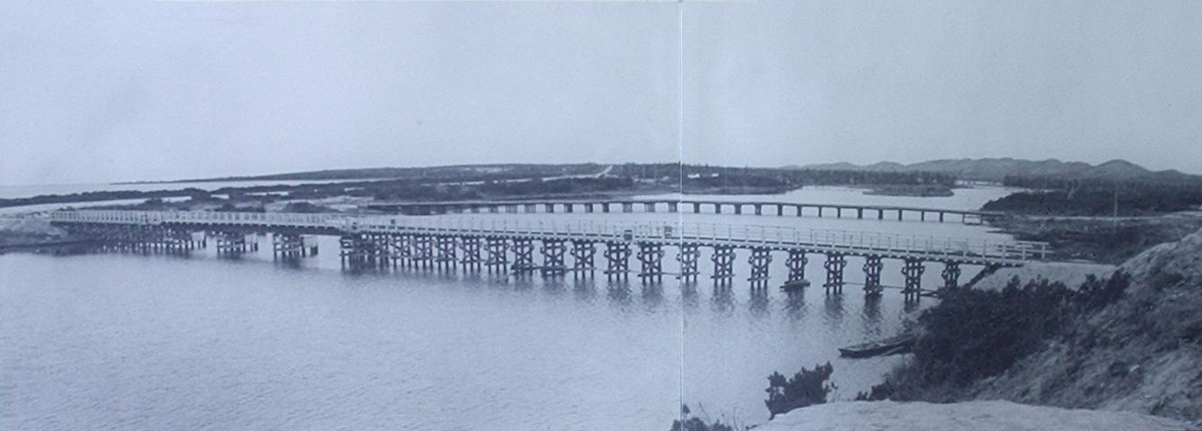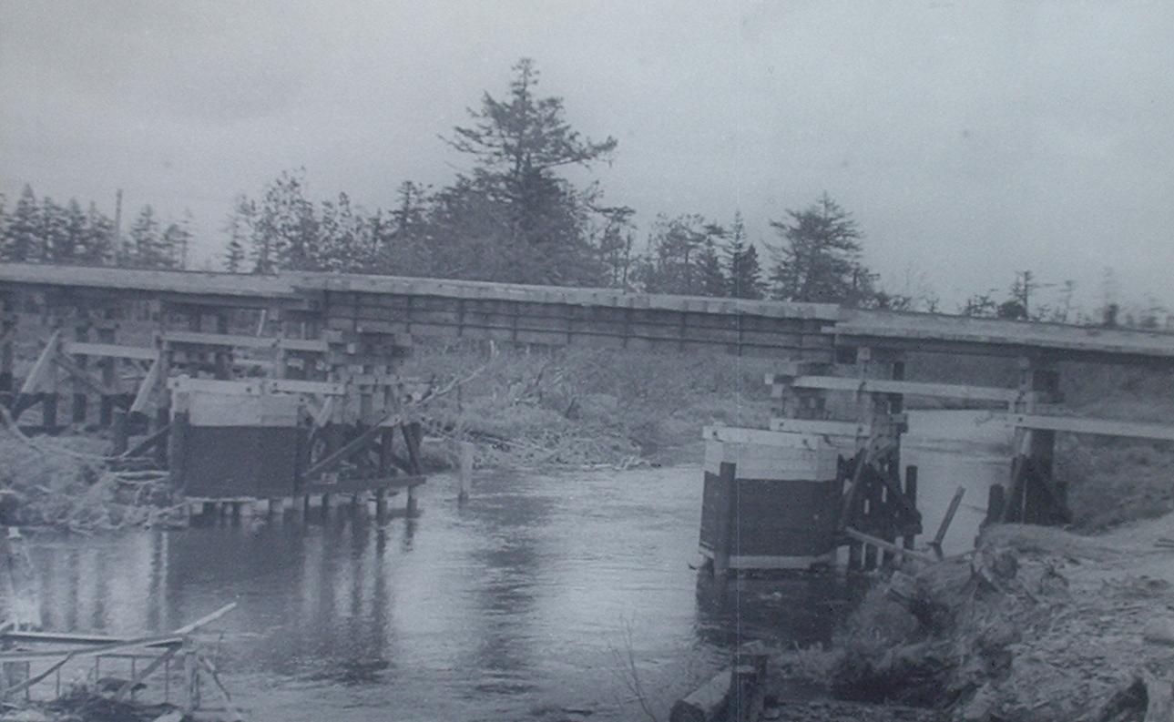 Железнодорожный мост через реку Сабо. На втором плане мост на автовремянке.