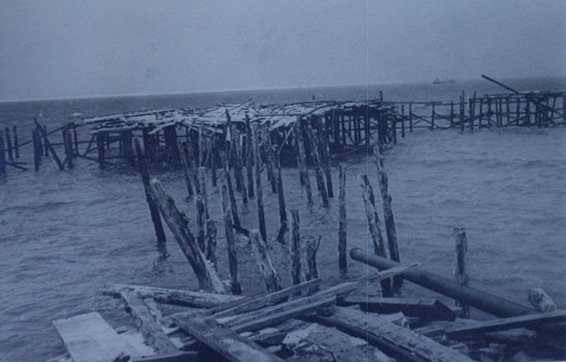 После урагана 19 октября 1950 года — разрушенные пирсы в порту Москальво.