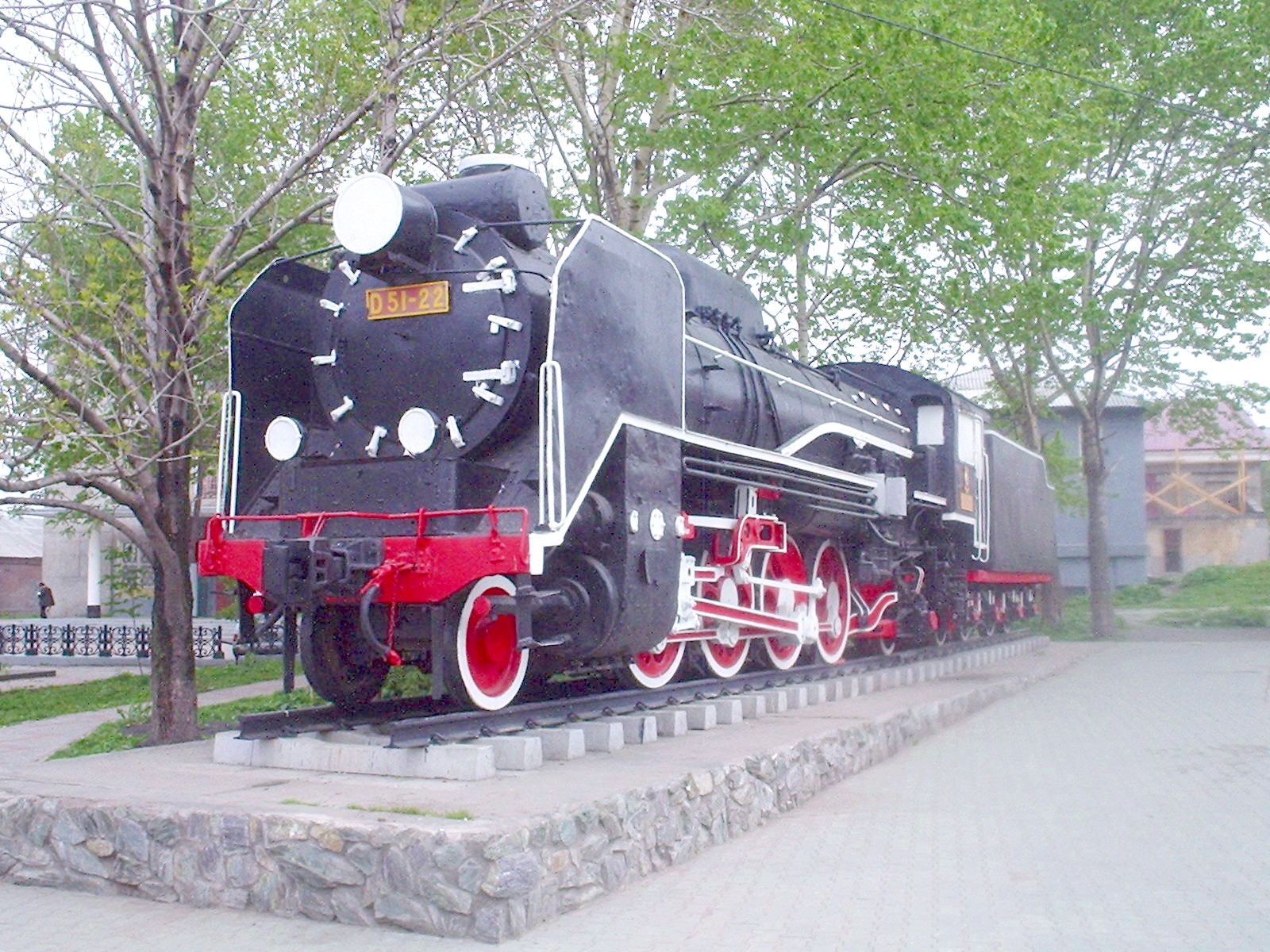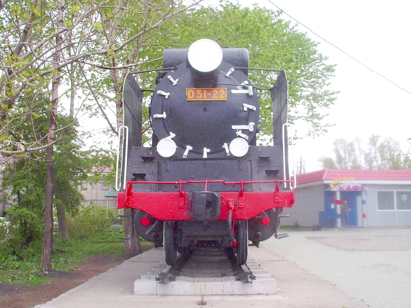 Паровоз-памятник D51-22 вблизи вокзала на станции Южно-Сахалинск.