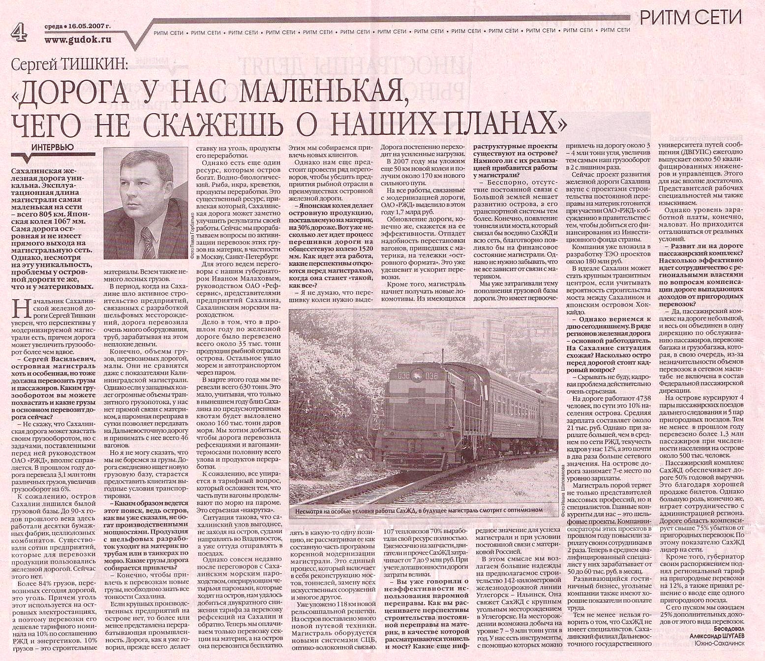 «Дорога у нас маленькая, чего не скажешь о наших планах» (газета «Гудок», 16.05.2007).