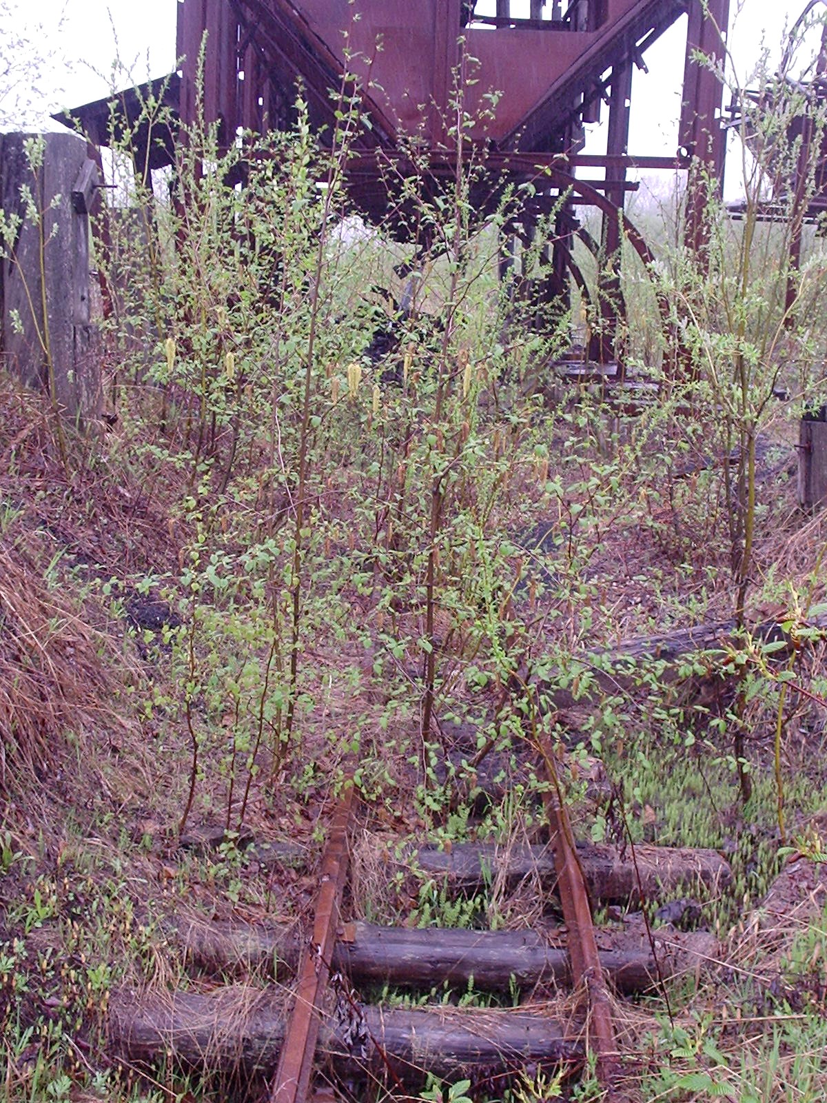 Уцелевший фрагмент рельсового пути на окраине посёлка Тихменево.