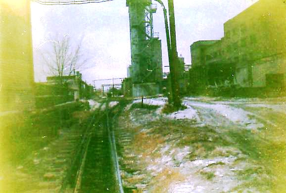 Первая cтрелка на главной станции узкоколейной железной дороги (территория комбината).