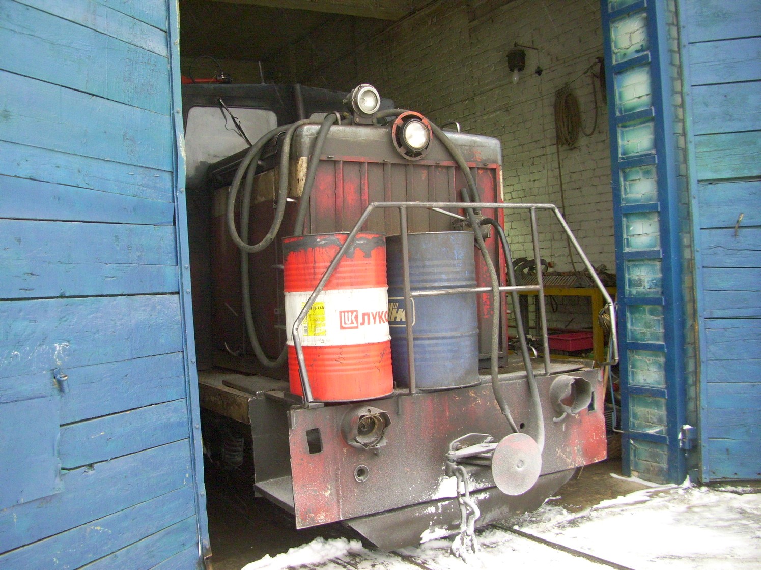 Тепловоз-автомотриса ТУ8П-001 готовится к въезду в депо.