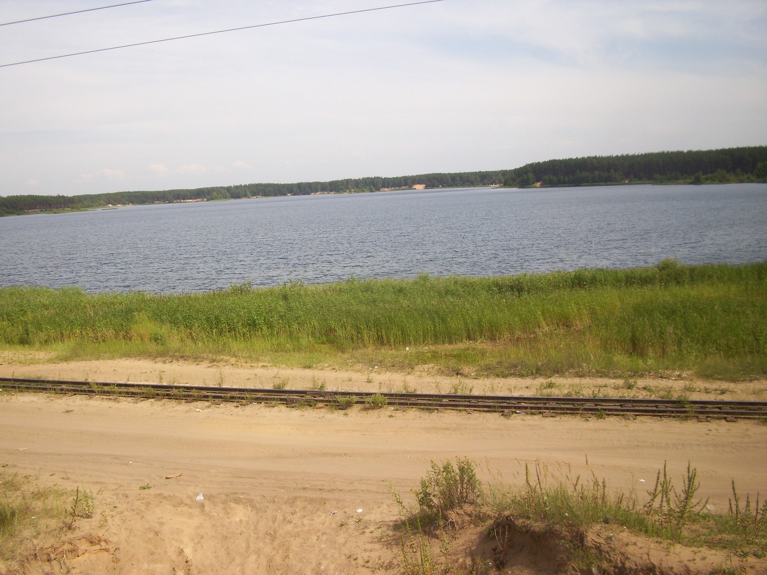 Впереди — переезд (пересечение с автодорогой Тверь — Кимры). Вид на восток.