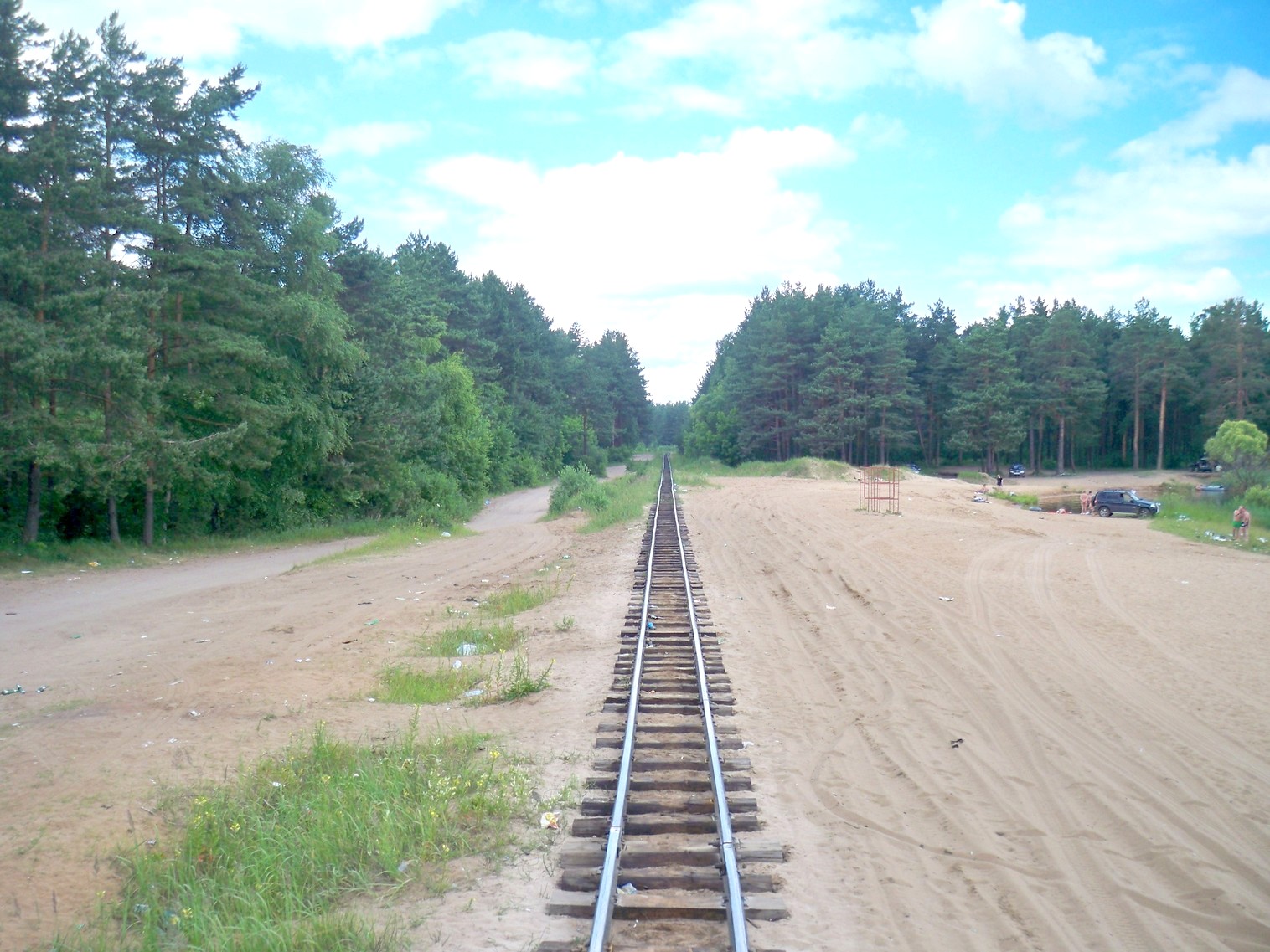 Линия у Константиновского карьера. Отдыхающие приветствуют поезд.