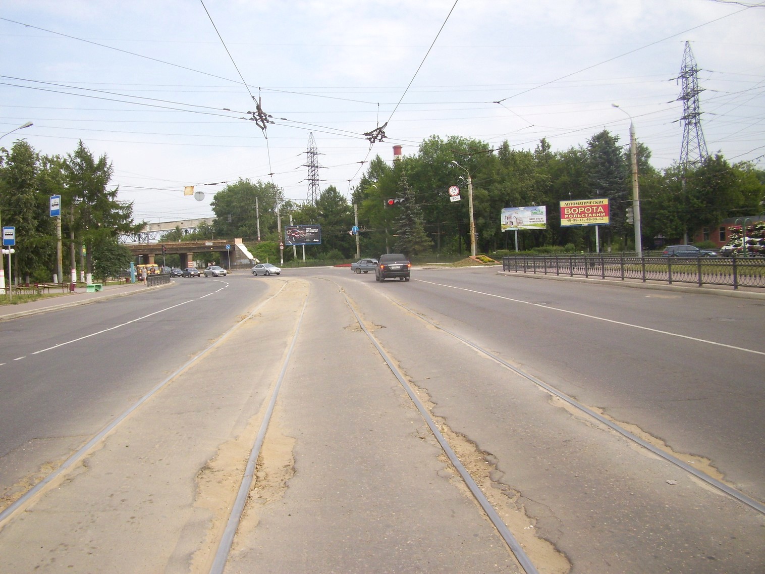 У остановки «Комсомольская площадь». Вид в сторону центра города.
