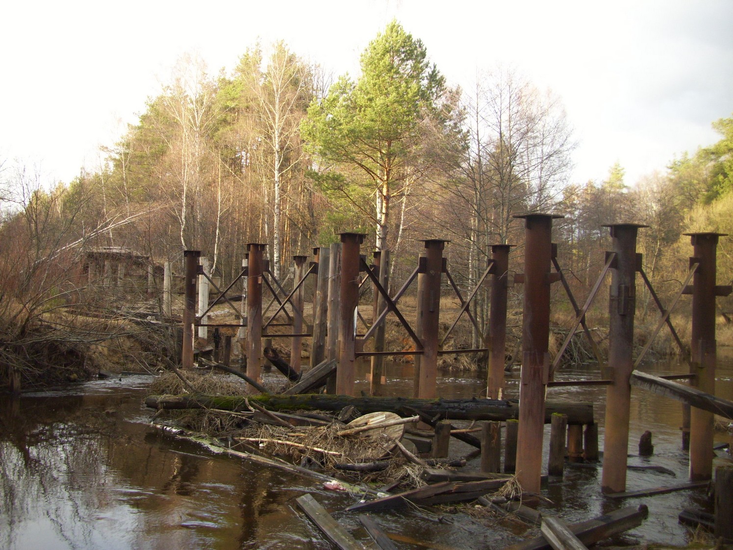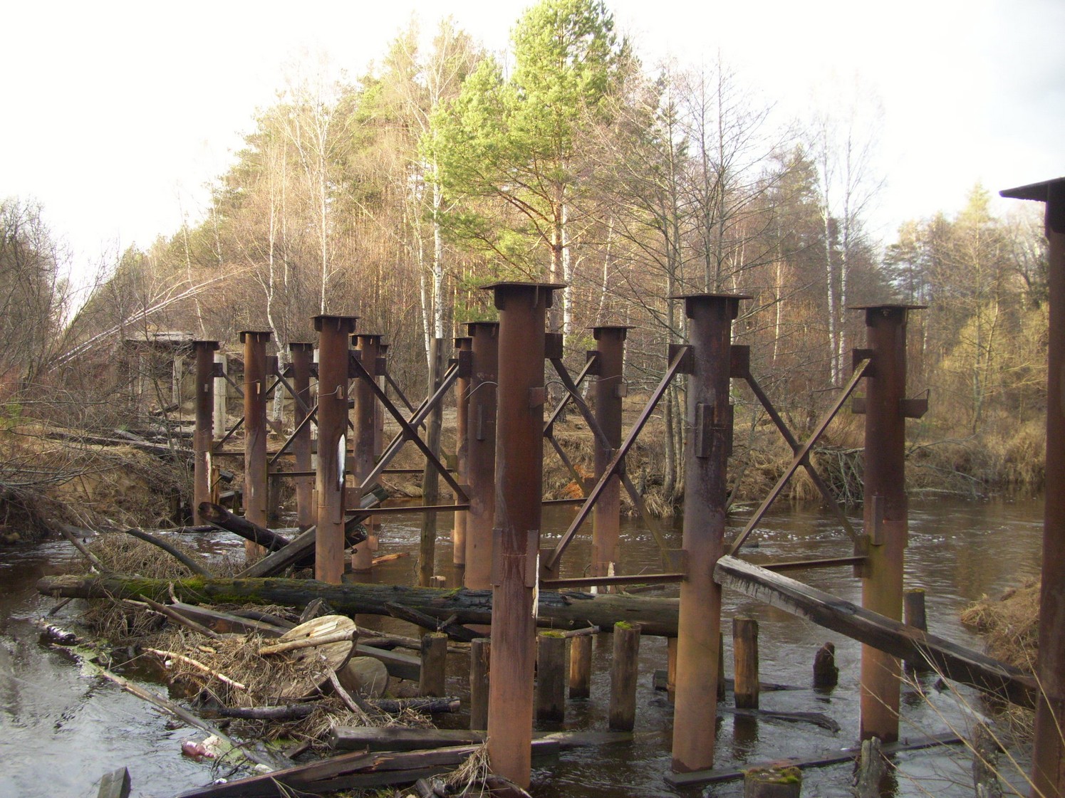 Разрушенный мост через реку Поля (тот же мост в 2006 году). Вид в западном направлении.