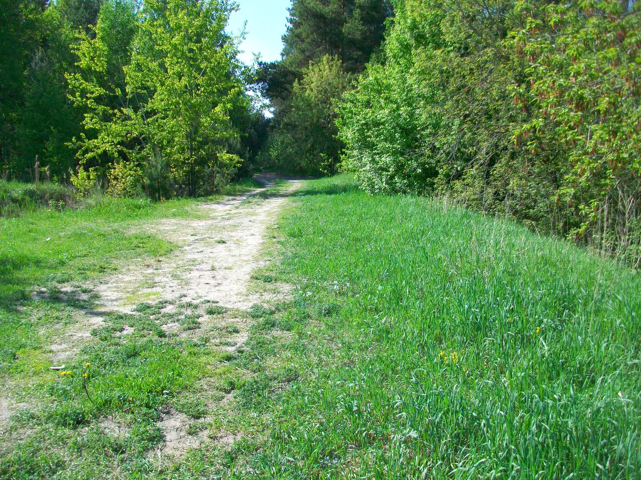Разобранный участок между станцией Бордуки и мостом через реку Поля. Вид на восток,