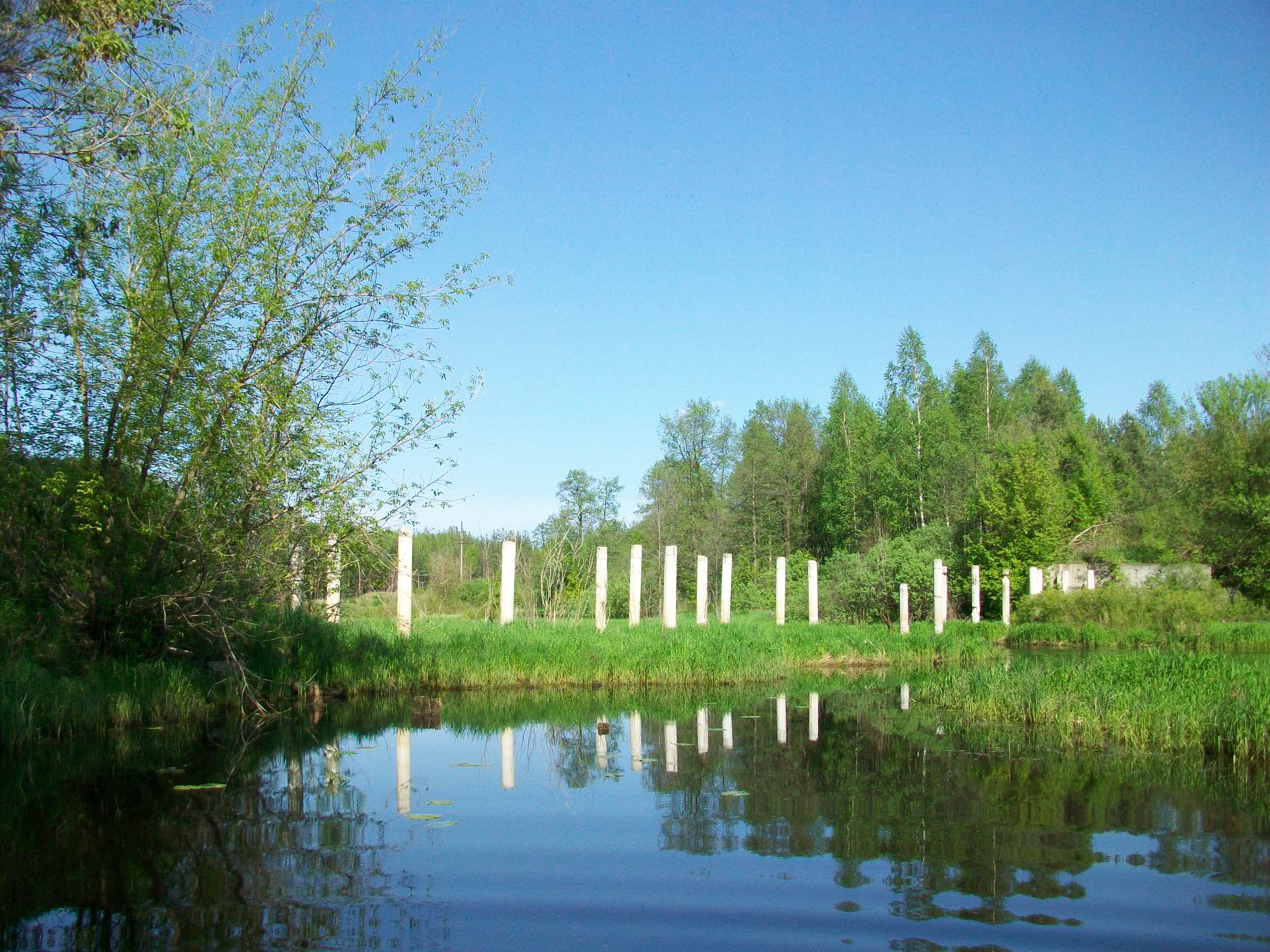 На снимках: разобранный участок между станцией Бордуки и мостом через реку Поля, разрушенный мост через Полю. Именно здесь я примерно в 1986 году впервые оказался на узкоколейной железной дороге.