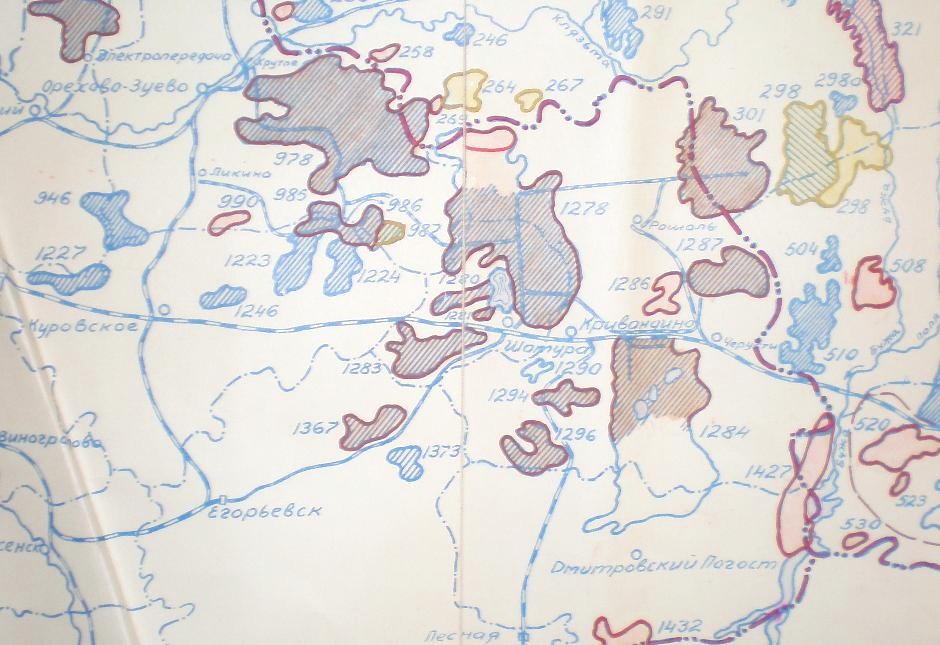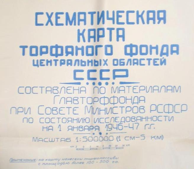 Фрагмент «Схематической карты торфяного фонда центральных областей СССР», изданной в 1948 году.