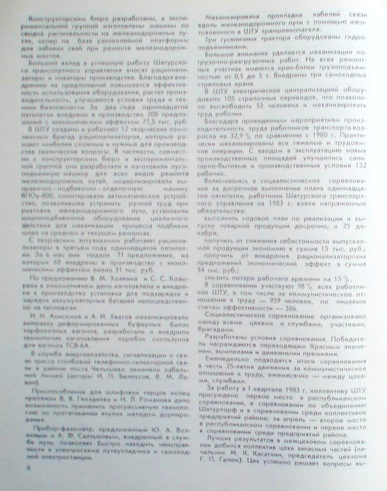 «Шатурское транспортное управление в одиннадцатой пятилетке», «Опыт