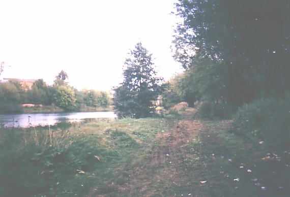 Впереди — «нижний» пруд на реке Гуслица. Вид в сторону южной территории комбината.
