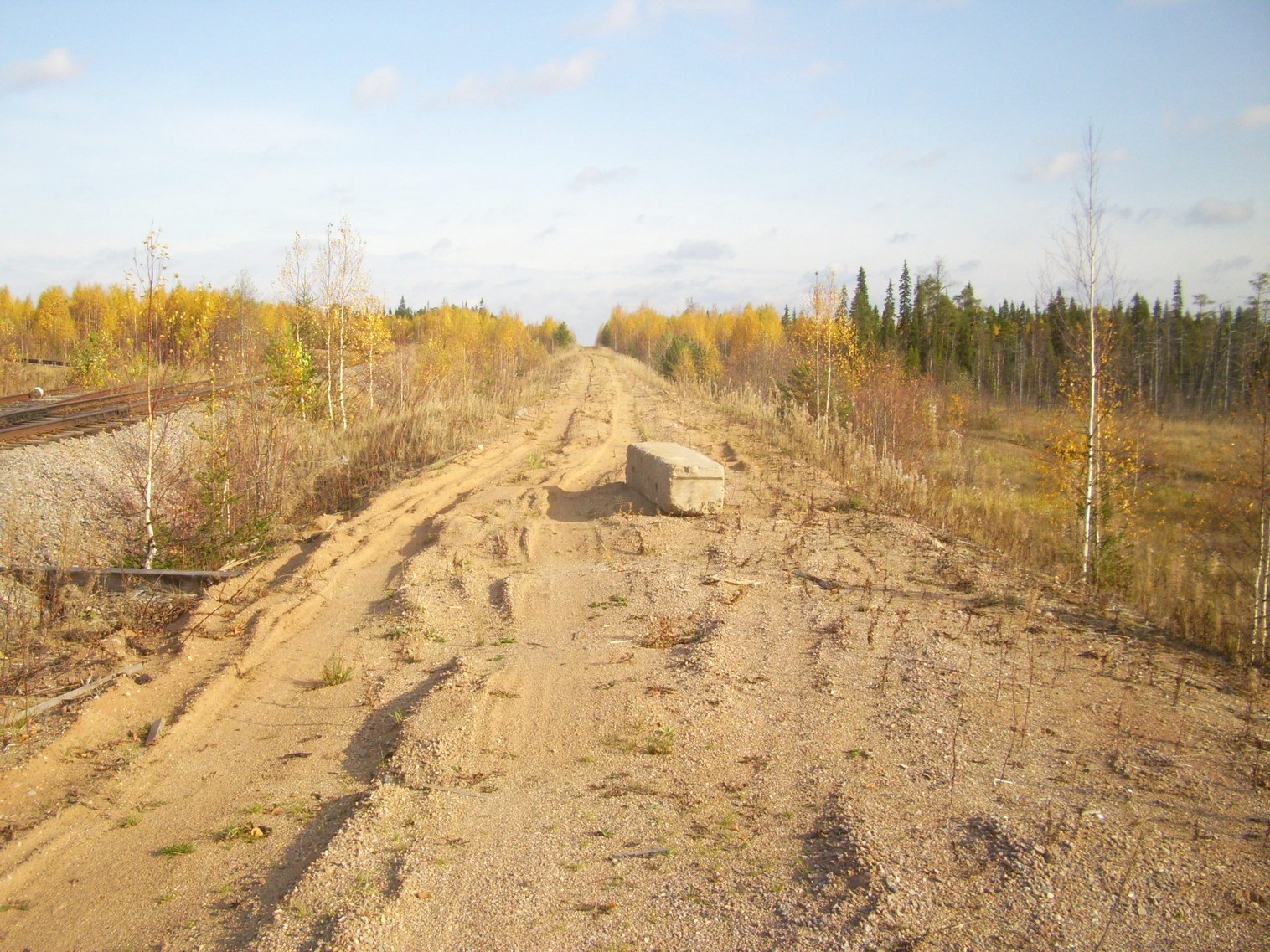 Начало разобранного участка линии от Явзорской на Лешуконское. Вид в сторону Лешуконского.