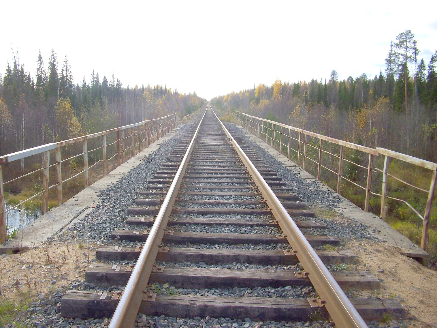 Вид из той же точки в противоположном направлении, в сторону Явзорской. Мост через реку Верхний Шангас.