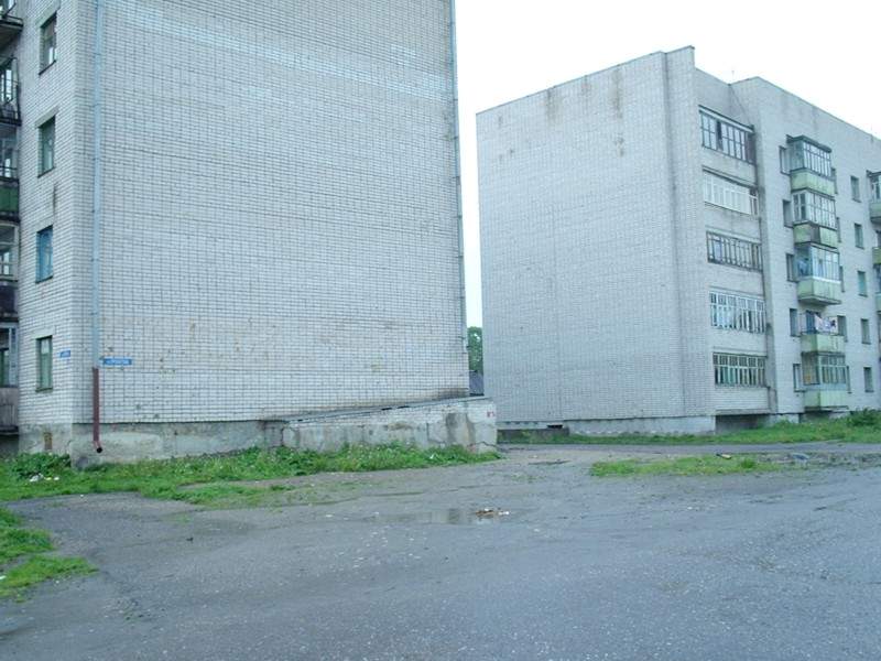 «Щель» между жилыми домами. Пройдя через неё, можно увидеть «Харовское чудо».