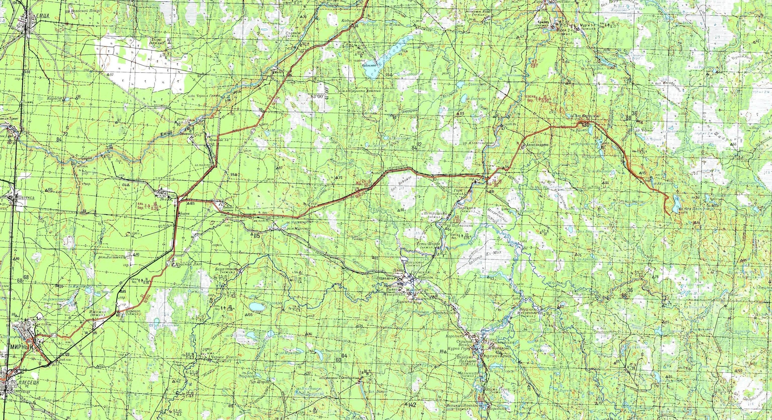 Железнодорожные линии на топографической карте масштаба 1:200 000, изданной в 1986 году (некоторые участки обозначены как узкоколейные железные дороги).