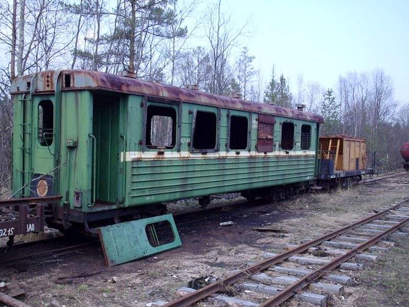 Вагон ТСВ на тупиковом пути. Вид в сторону центра станции Торфяная.