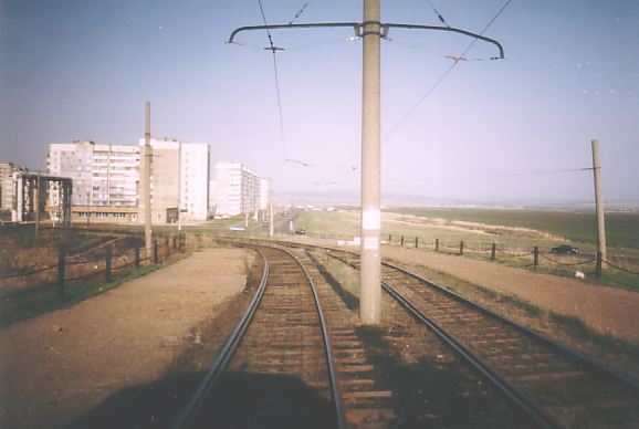 Разворотное кольцо, находящееся к северу от остановки «Вокзал». Вид в южном направлении.