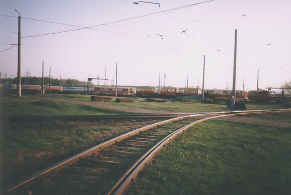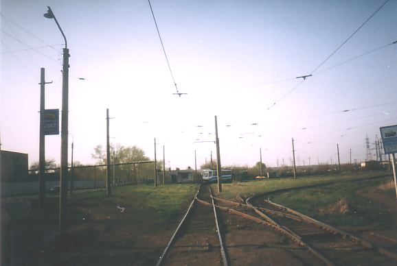 Трамвайная линия вблизи депо, вид в северном направлении. Впереди — остановочные