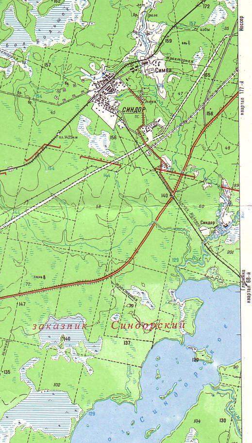 (показана только станция Синдор и её окрестности).