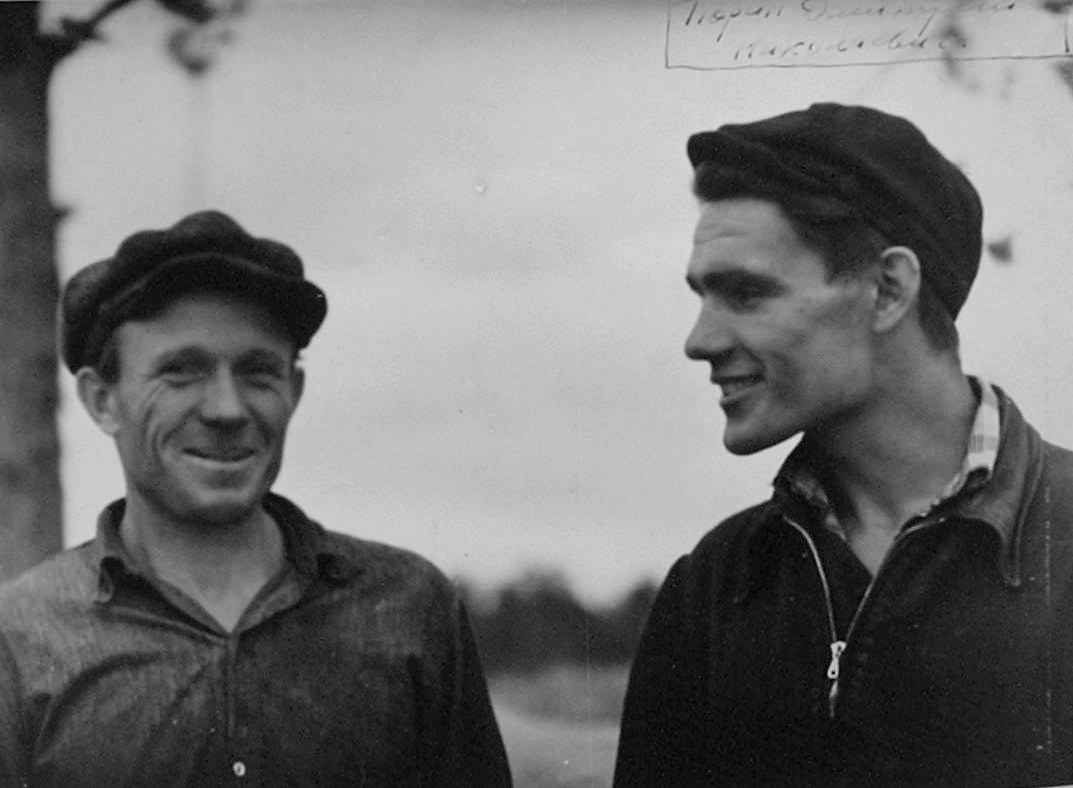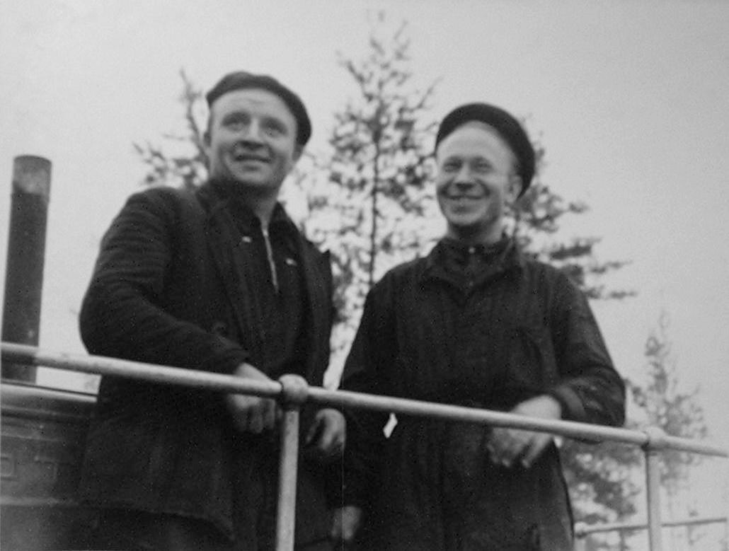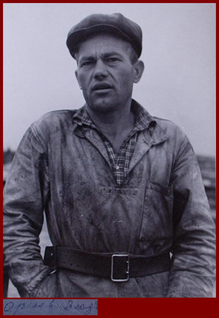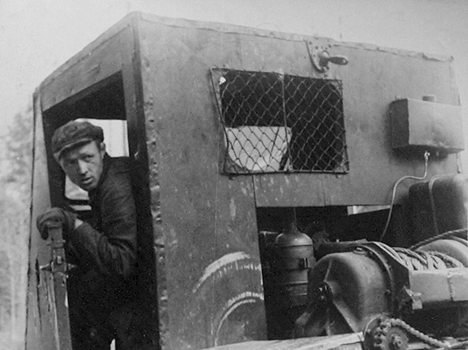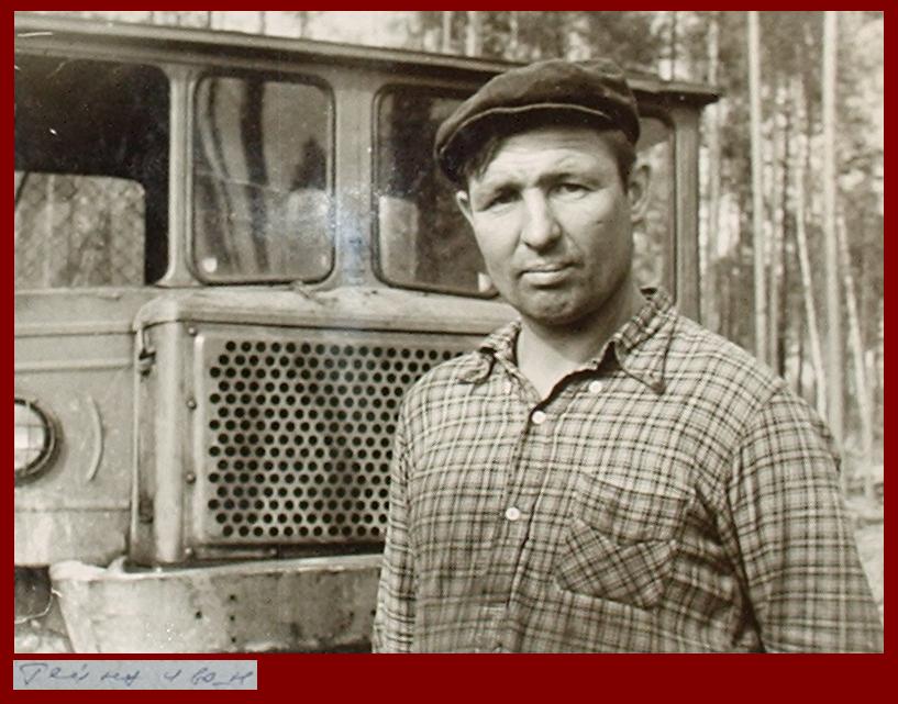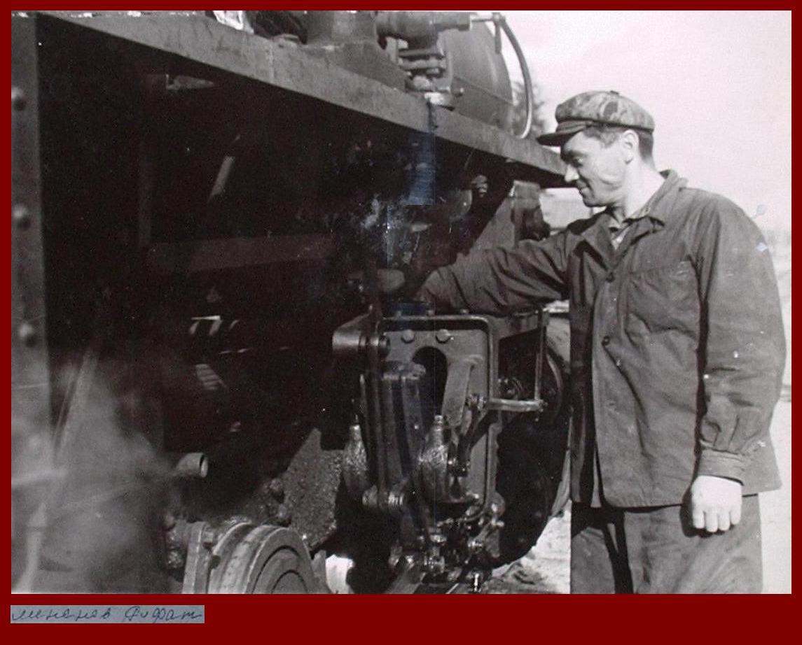Работник узкоколейной железной дороги Иван Разин на станции Сёйва (?).