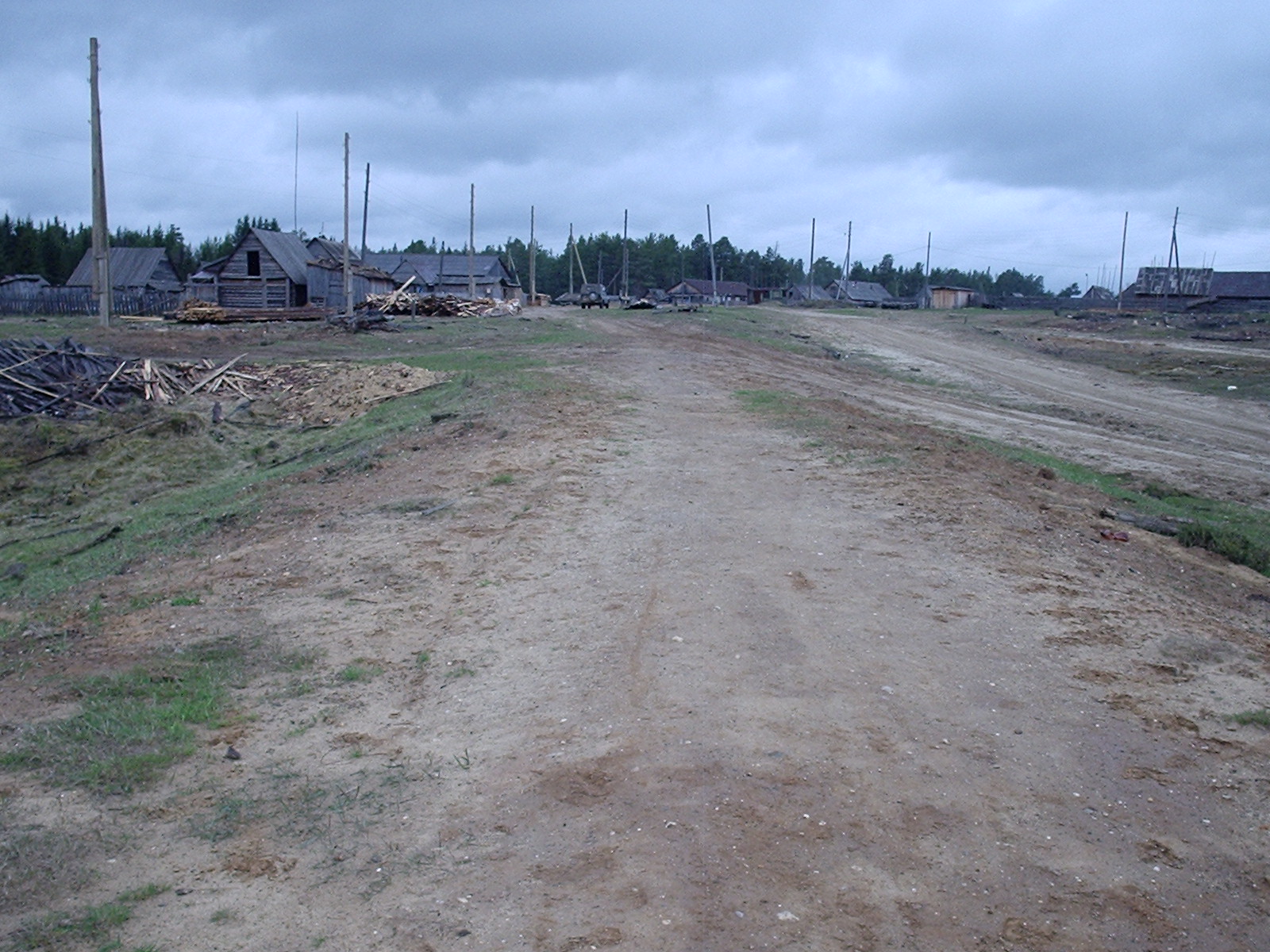 Разрушенная главная станция узкоколейной железной дороги. Вид со стороны центра посёлка Сёйва в сторону леса.