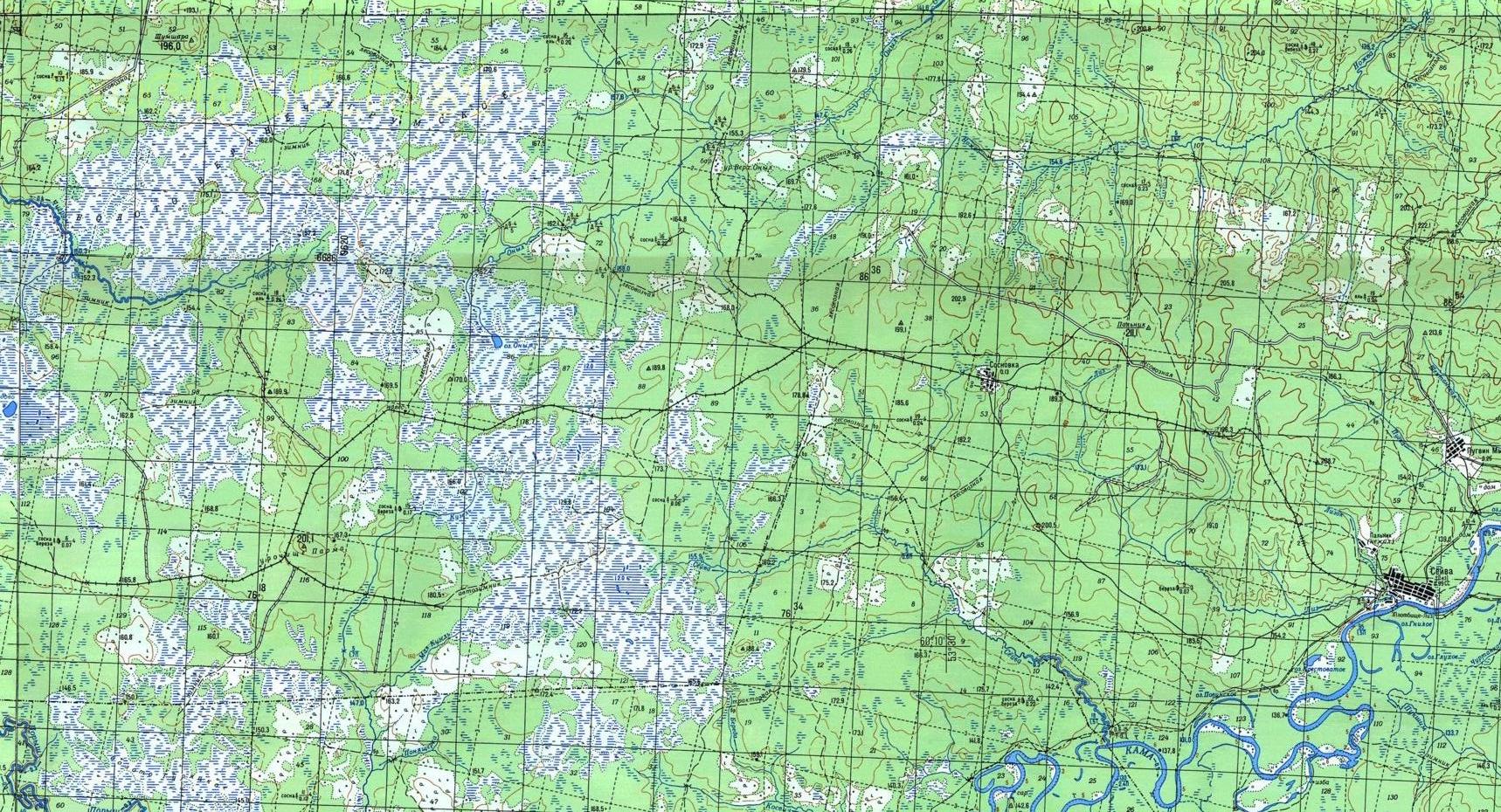Узкоколейная железная дорога на топографической карте масштаба 1:100 000.
