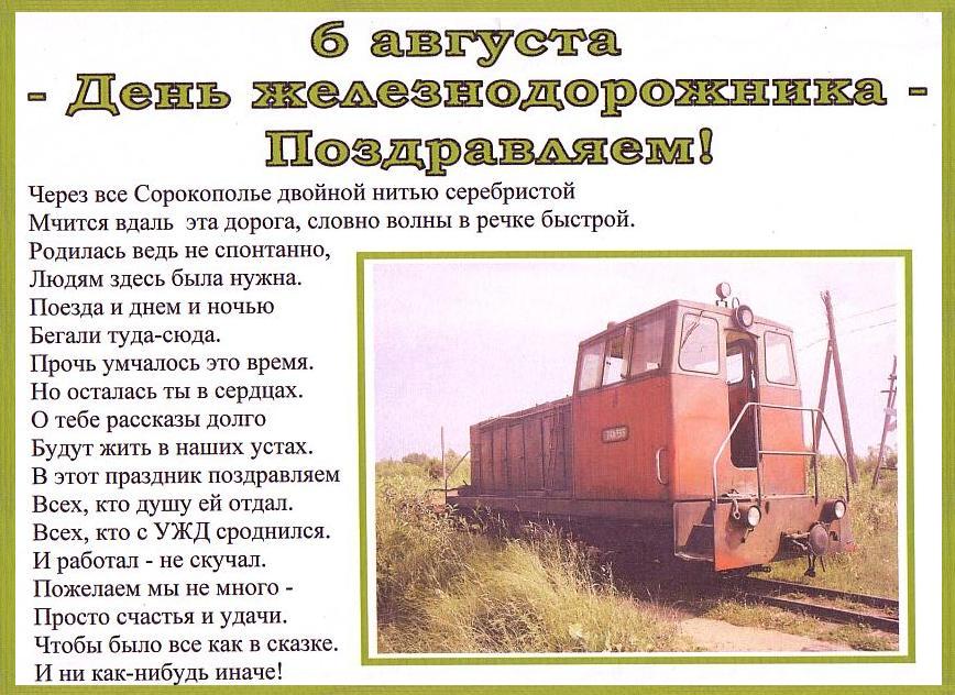 Плакат (поздравление с Днём железнодорожника), изготовленный Т.А. Черенко. Такие плакаты 5 августа 2006 года