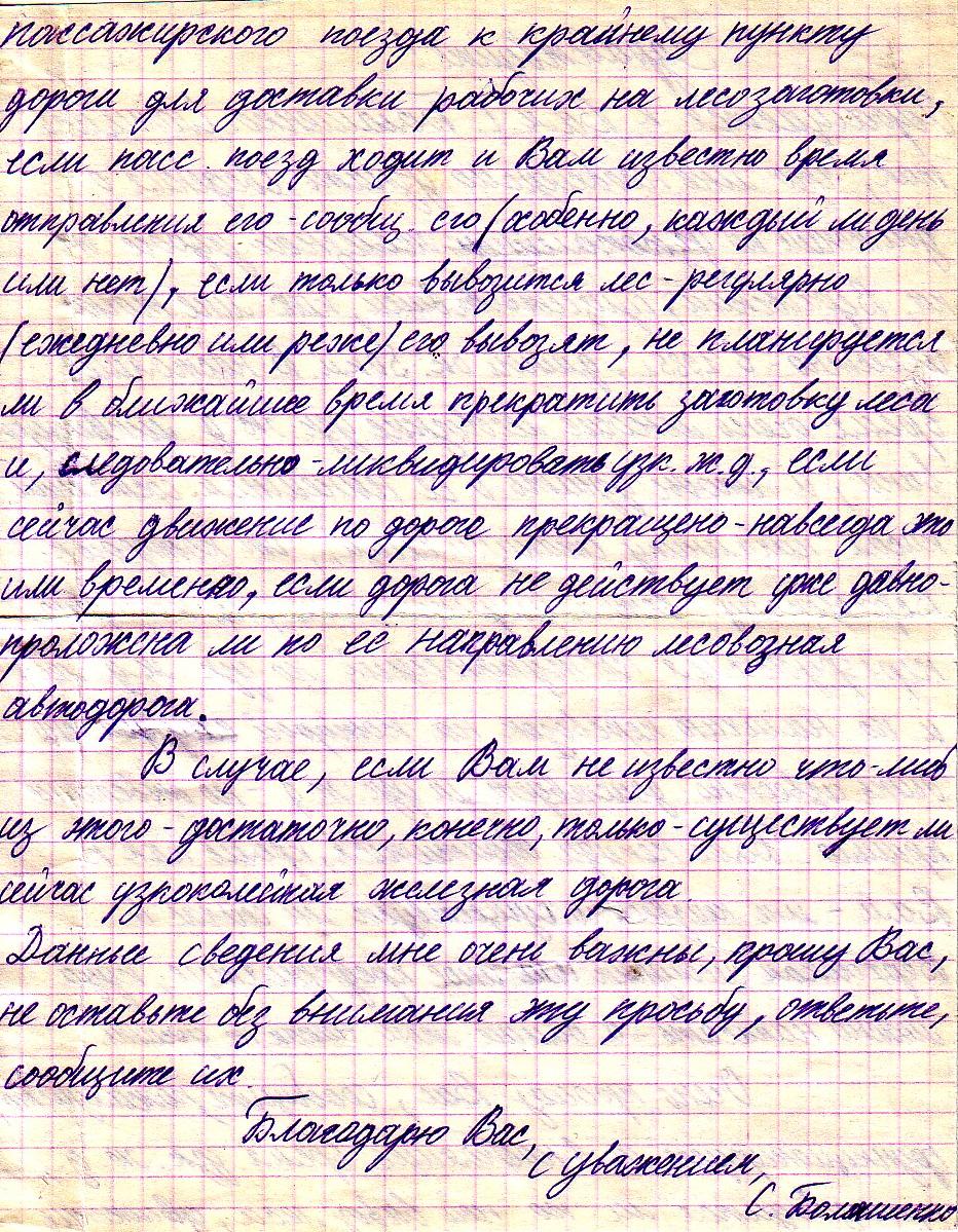 Написанное автором письмо-запрос (оно было прислано обратно вместе с ответом) — страница 2.