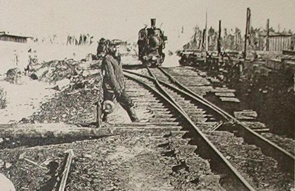 В конце 1947 года привезли первый паровоз, машинистом которого был Ф. Пожарский. В 1948 году начали строить железнодорожную станцию. Начальником был Константин Ильич Тарасов.