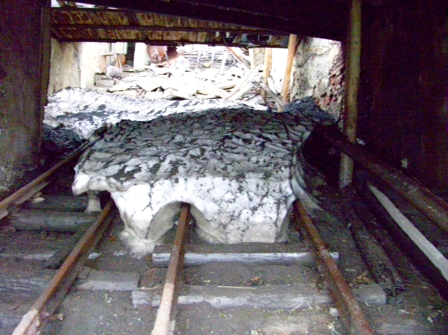 в «рельсовый рудоспуск». Уцелевшие фрагменты рельсового пути.