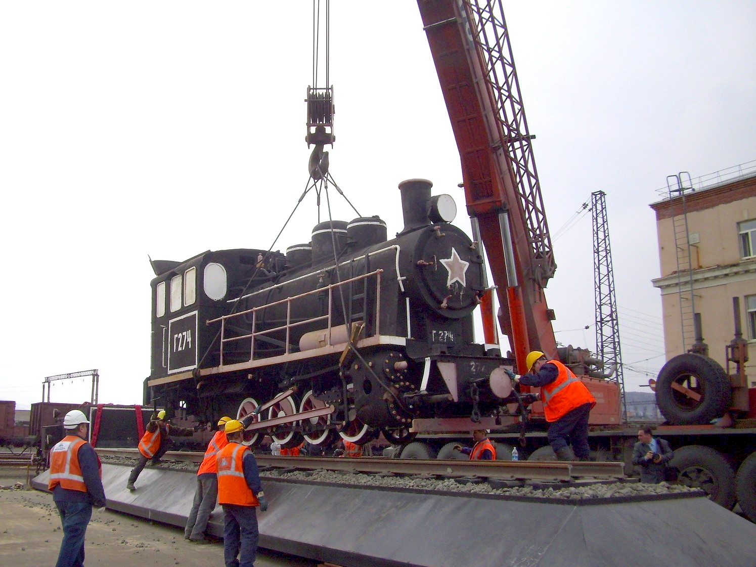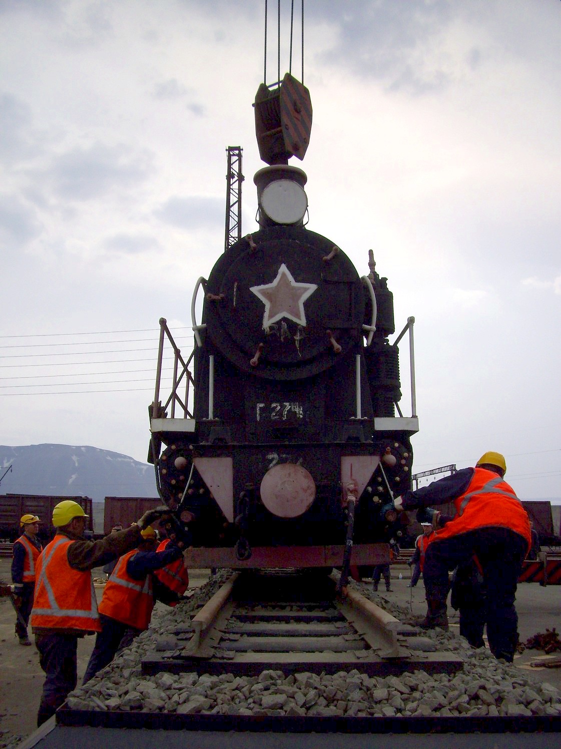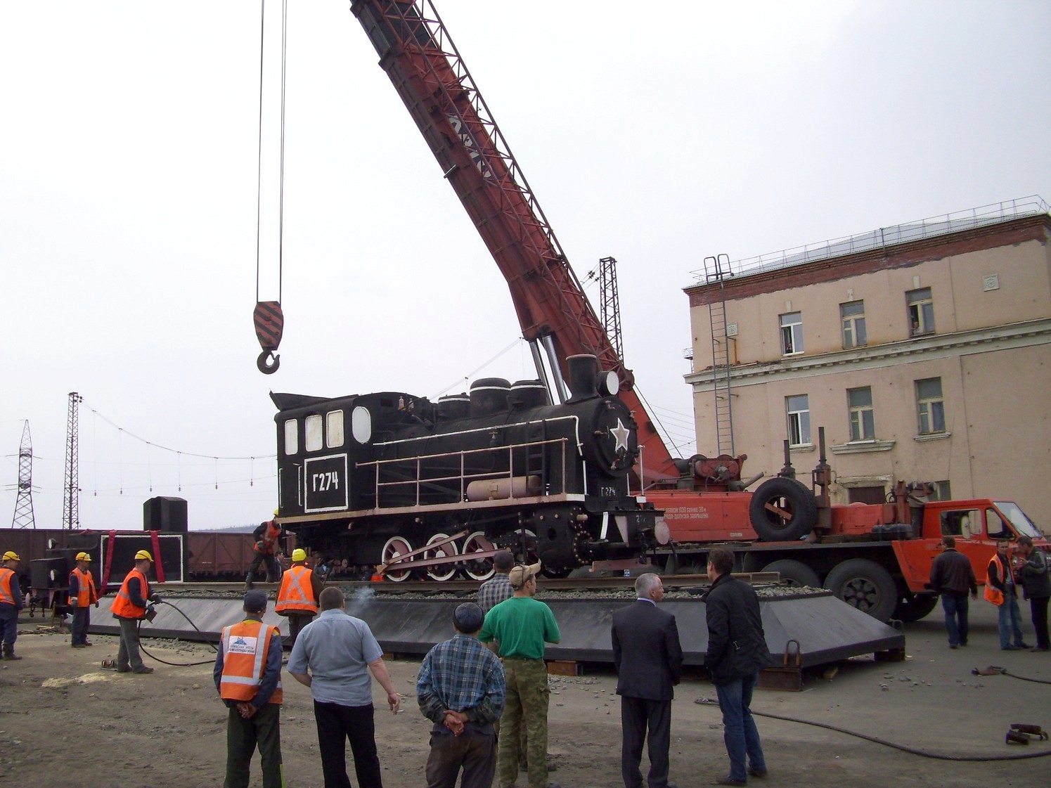 Страница является незавершённой. На снимках: установка паровоза-памятника у норильского вокзала.
