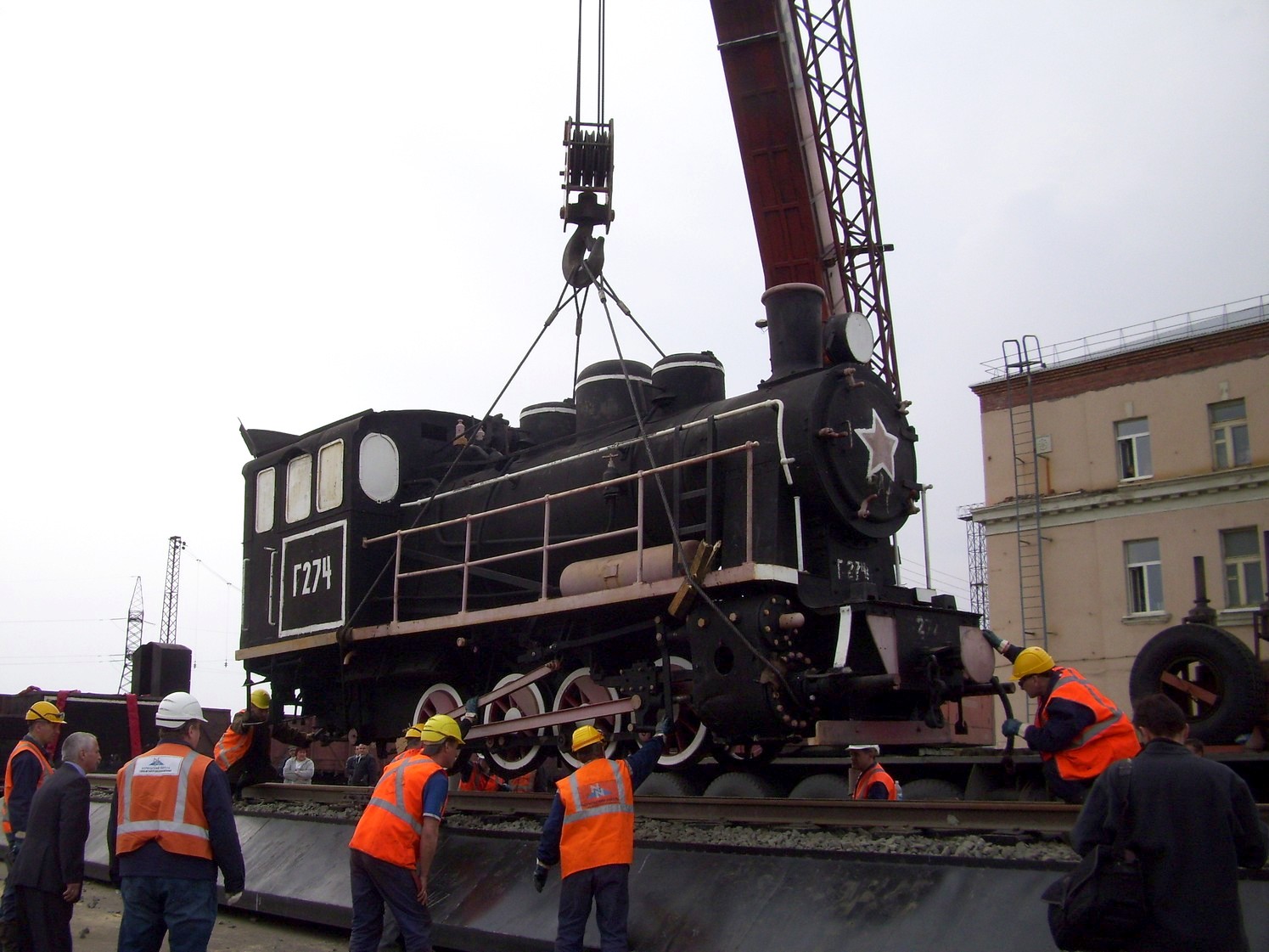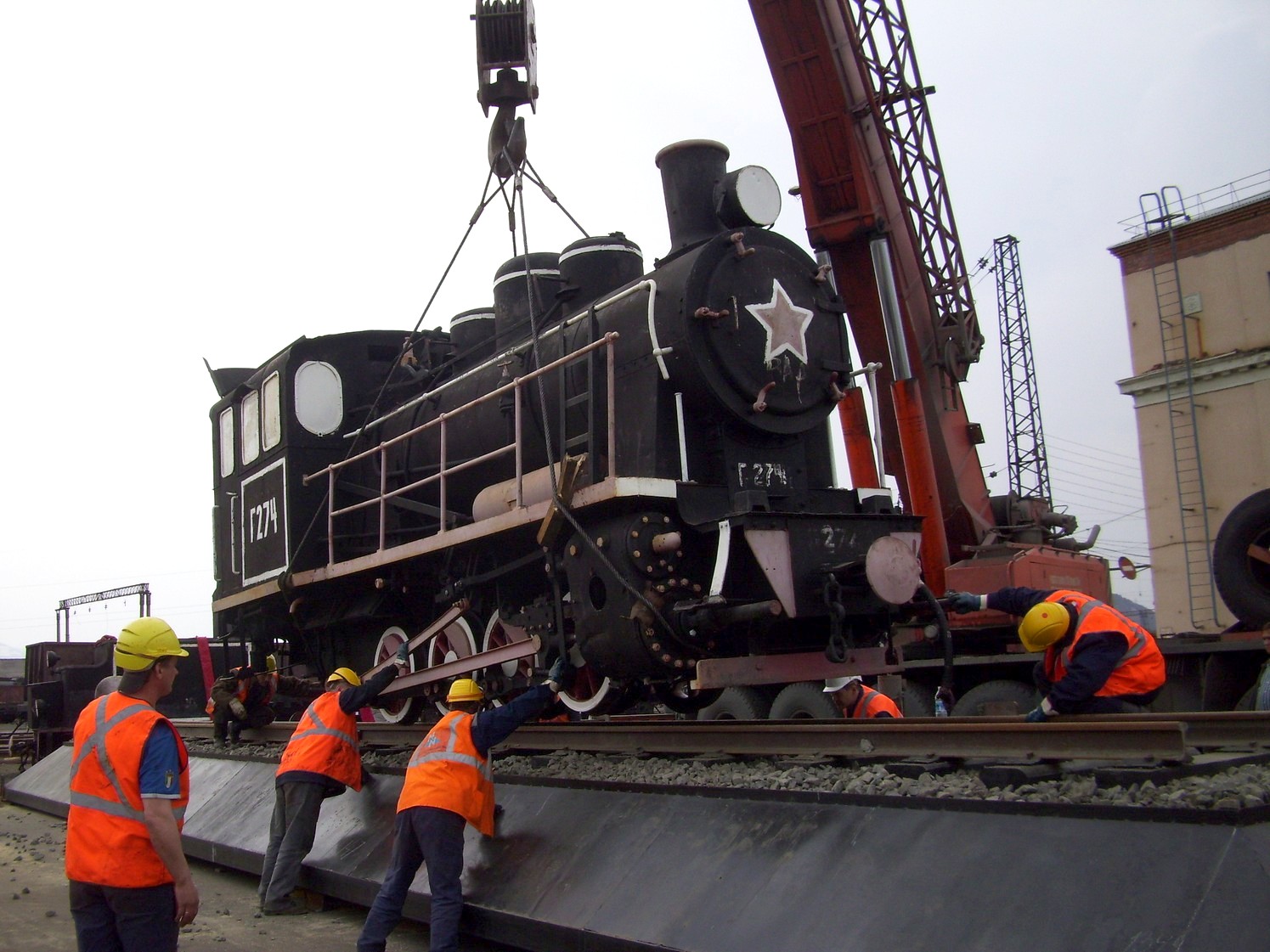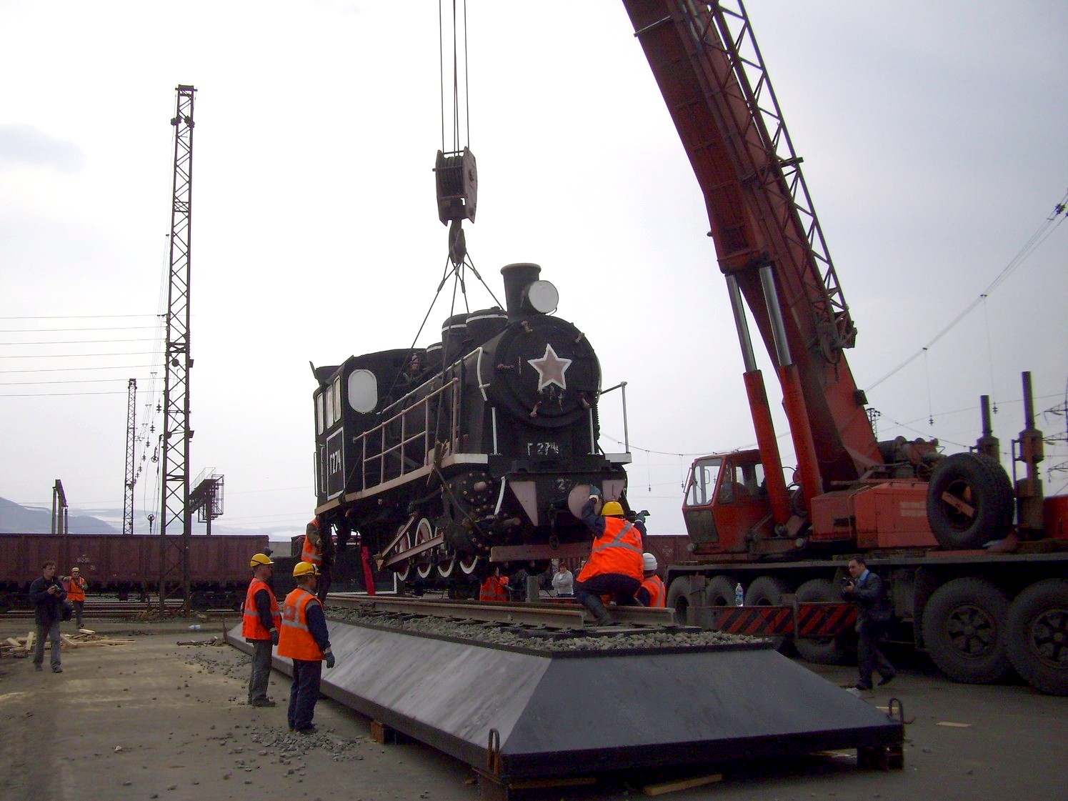 Страница является незавершённой. На снимках: установка паровоза-памятника у норильского вокзала.