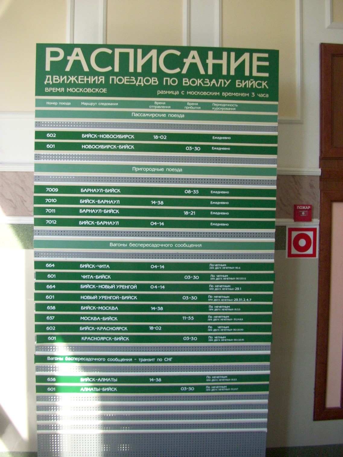 Расписание движения поездов по станции Бийск.