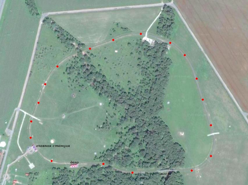 Узкоколейная железная дорога на спутниковом снимке (источник — «Google maps»,