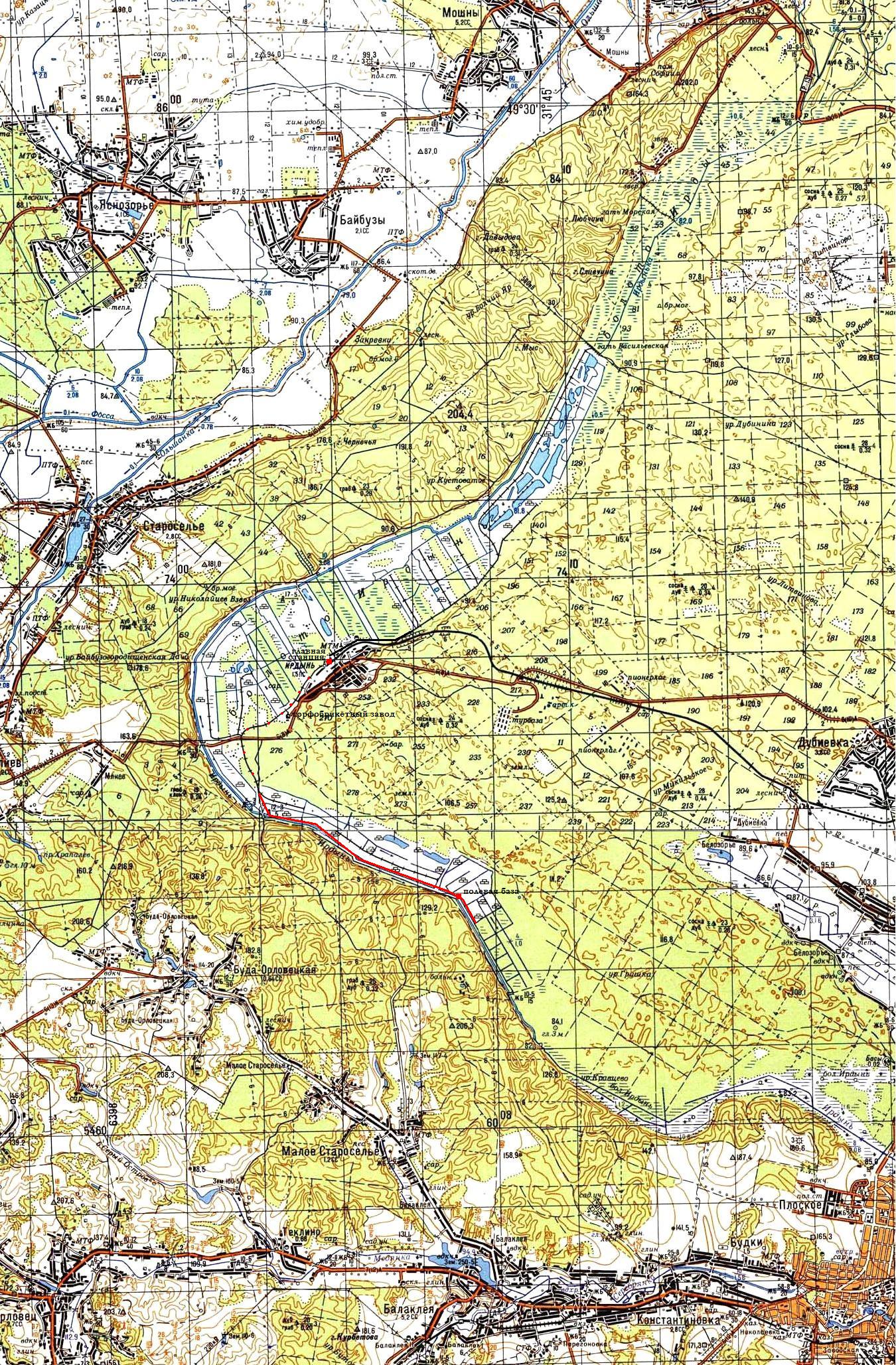 масштаба 1:200 000, изданной в 1990 году (северная часть), 1980 году (южная часть). Военные объекты,