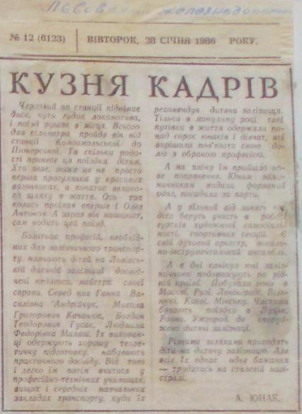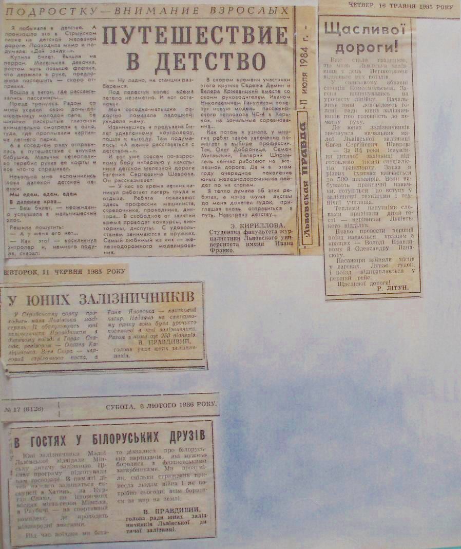 ЛЬВОВСКАЯ ДЕТСКАЯ ЖЕЛЕЗНАЯ ДОРОГА МАТЕРИАЛЫ СРЕДСТВ МАССОВОЙ ИНФОРМАЦИИ И ДРУГОЕ