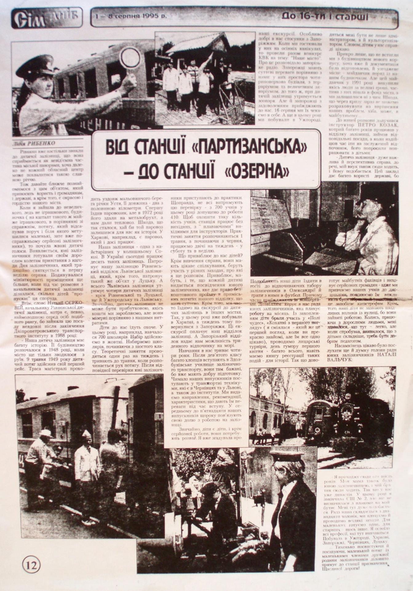 «От станции Партизанская до станции Озёрная». Публикация в газете «Семь дней», номер от 1 августа 1995 года.