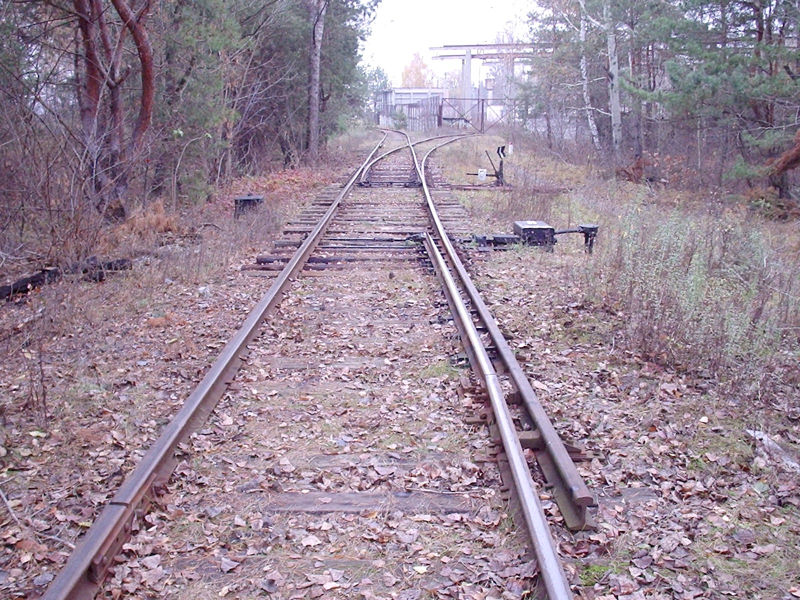 Фрагмент путей узкой колеи у пропиточного цеха. Вид в южном направлении.