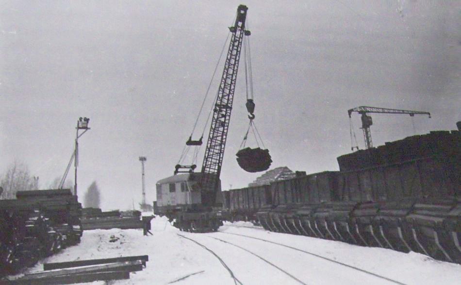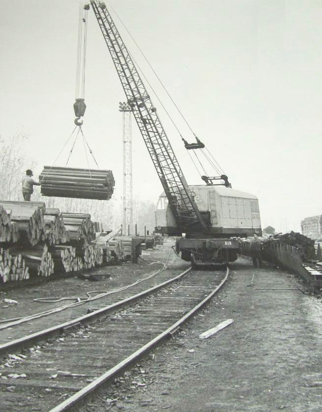 Первая механизация на выгрузке и погрузке вагонов — кран ПК-6.