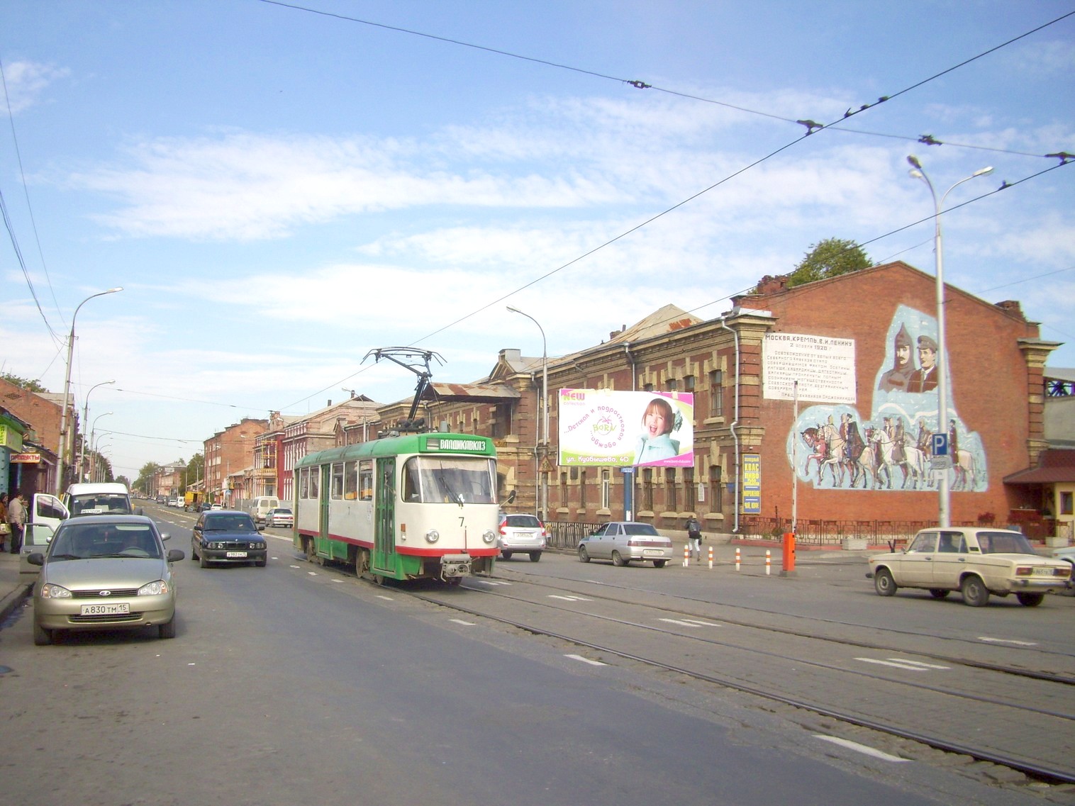 Трамвайный вагон вблизи перекрёстка улиц Маркова и Кирова.