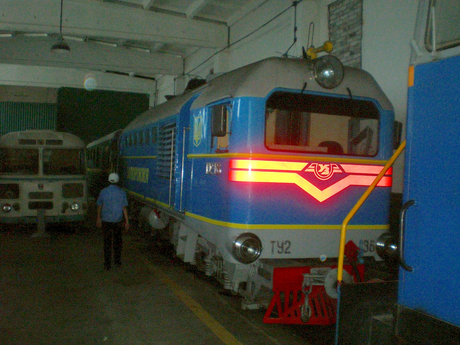 Станция Жовтневая. Тепловоз ТУ2-136 в депо.