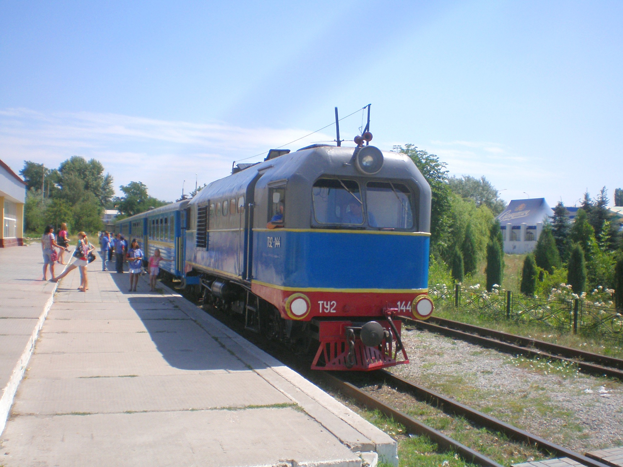 Станция Жовтневая. Пассажирский поезд готовится к отправлению.