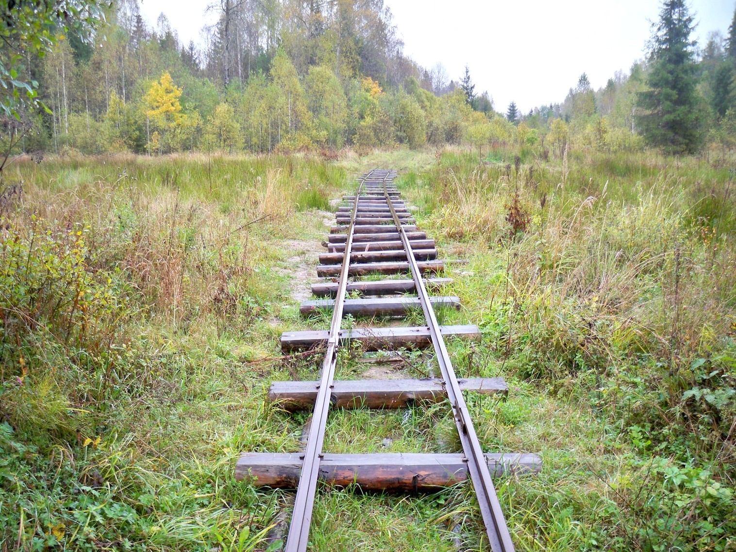 Линия электропередачи, пересекающая узкоколейную железную дорогу. Вид в южном направлении.