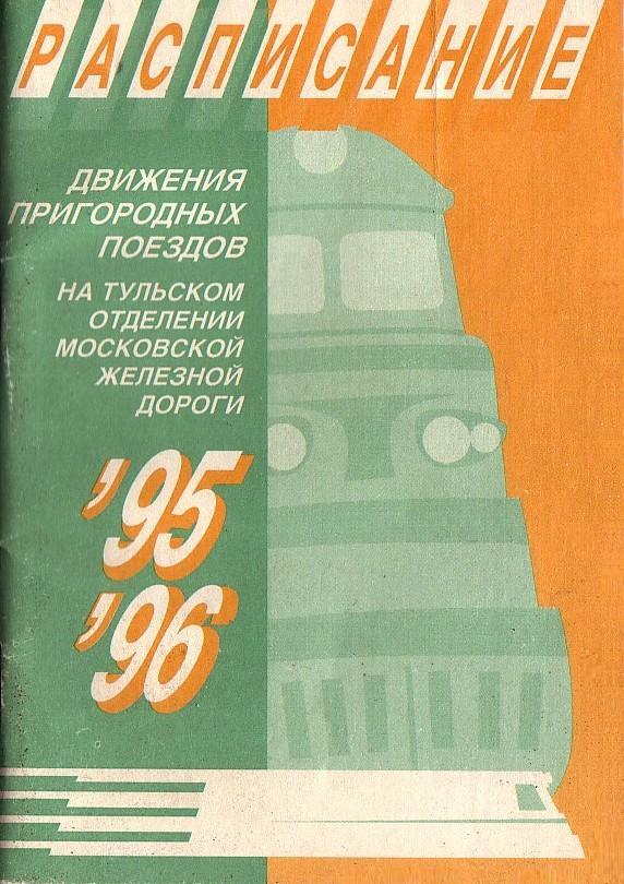 Обложка расписания движения пригородных поездов на 1995-1996 г.г. На