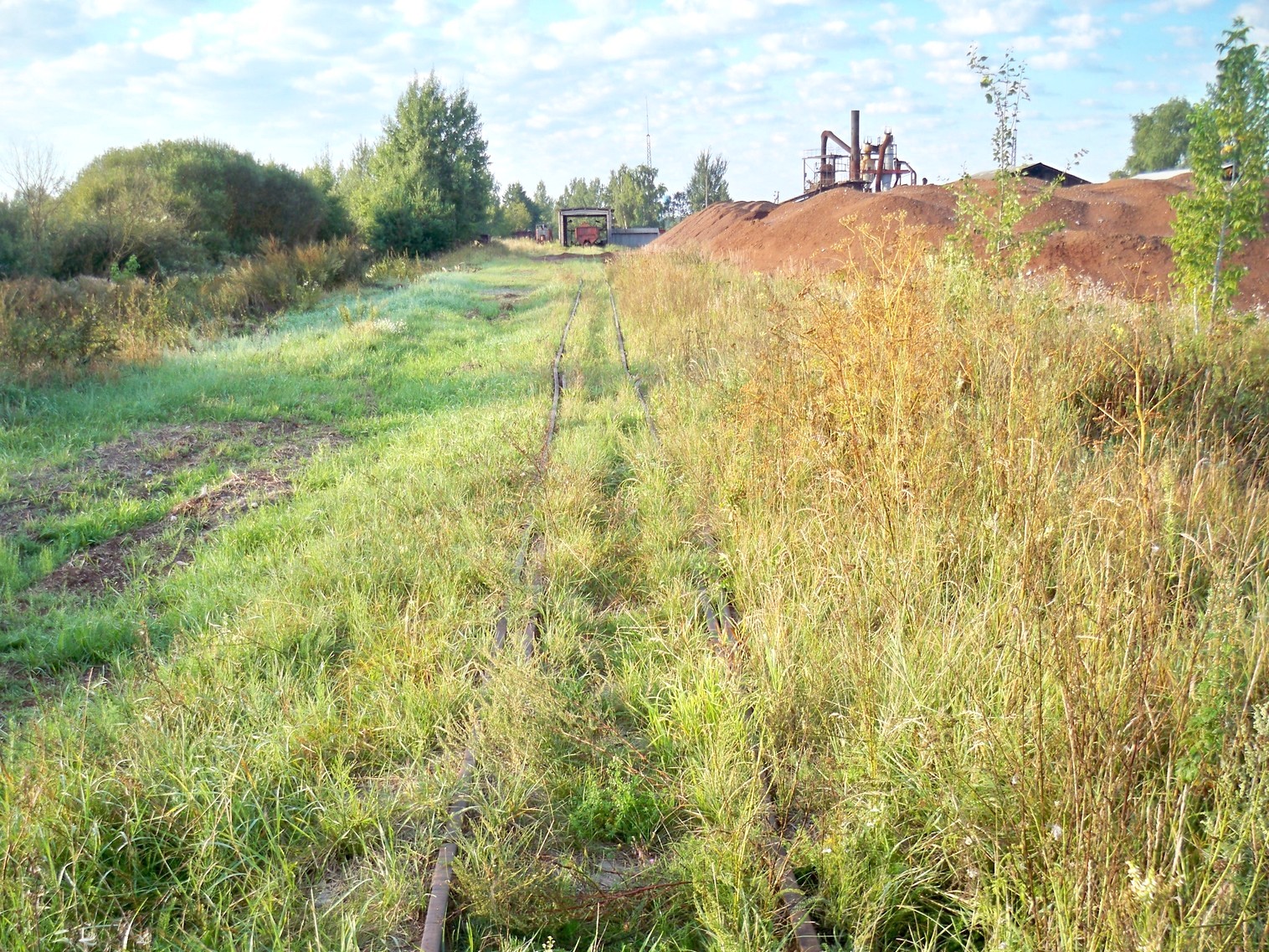На снимках: недействующие пути в посёлке Туголица, завод и действующие пути.