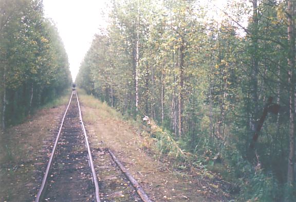 Начинается станция узкоколейной железной дороги. Вид в сторону леса.