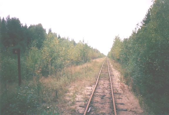 Впереди — конец 4-го километра, начало 3-го километра. Вид в направлении посёлка Урдома.