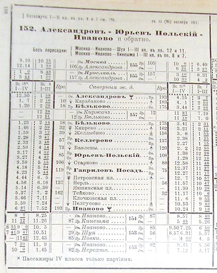Расписание движения поездов с 15 октября 1911 года (из «Официального указателя