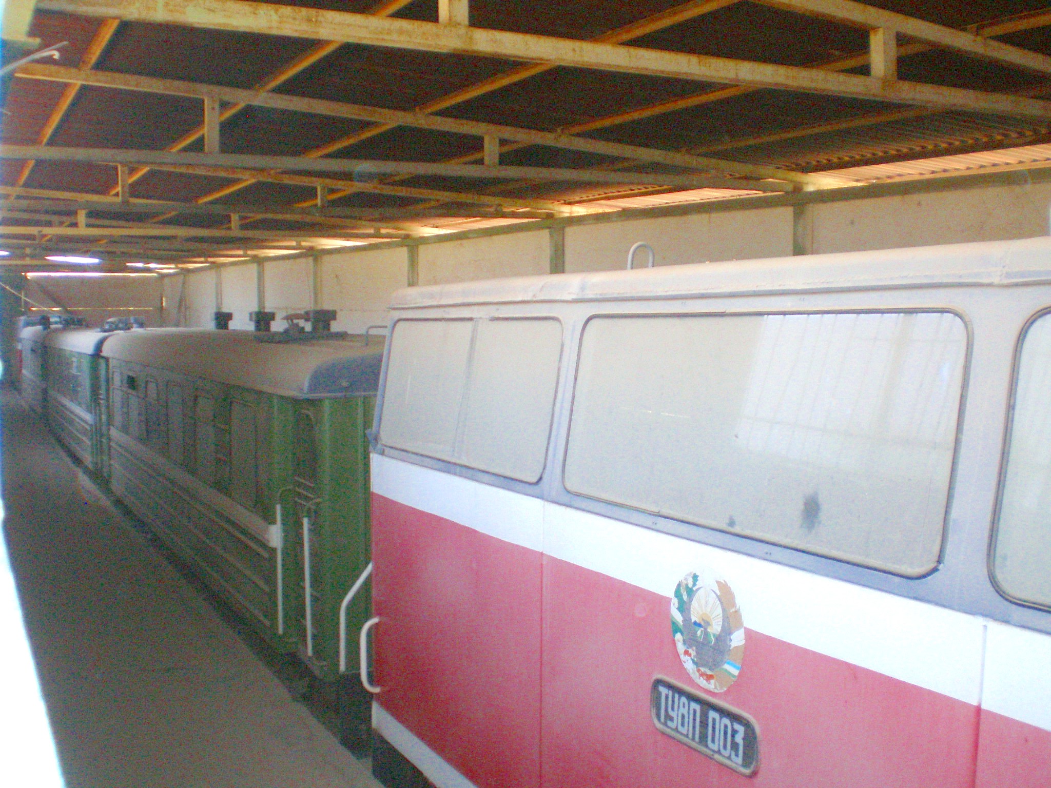 Никакого персонала на детской железной дороге не было. Через незастеклённые окна в здании депо пытаюсь фотографировать подвижной состав — редкие тепловозы-автомотрисы ТУ8П, удивительные для детских железных дорог. Это заметила присутствовавшая поблизости женщина-дворник, и вскоре я был арестован узбекской милицией.